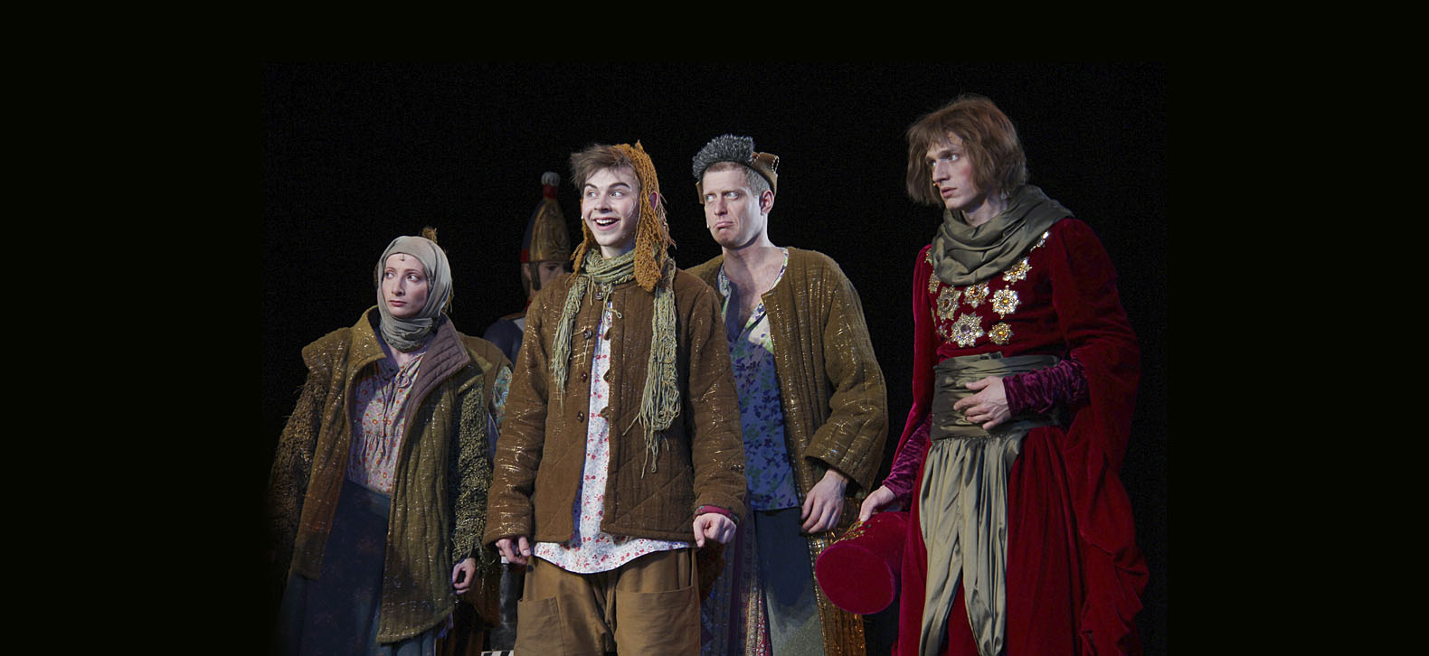остроумной иронией и сатирой. Роли в постановке исполняют молодые актёры,